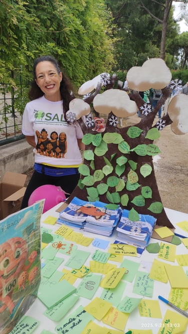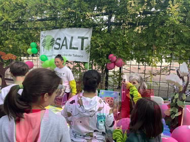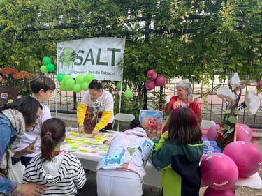 L@s niñ@s y sus familias se acercaron con curiosidad al stand de SALT para aprender de forma activa y lúdica sobre los riesgos del tabaco y los productos relacionados (como los cigarrillos electrónicos y vapeadores). Abordar la prevención desde la infancia es crucial, ya que permite que los más jóvenes crezcan con una clara comprensión de la importancia de los espacios libres de humo y la necesidad de proteger su salud respiratoria.